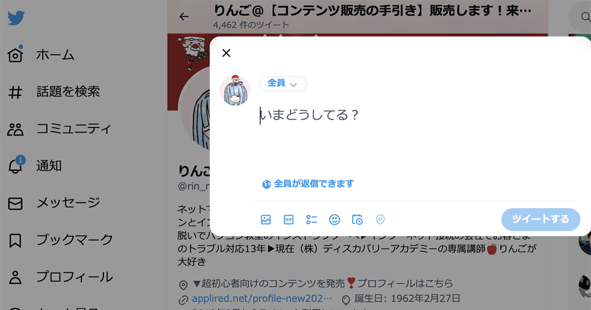 *右上の[ツイート]をクリックしてもOKです